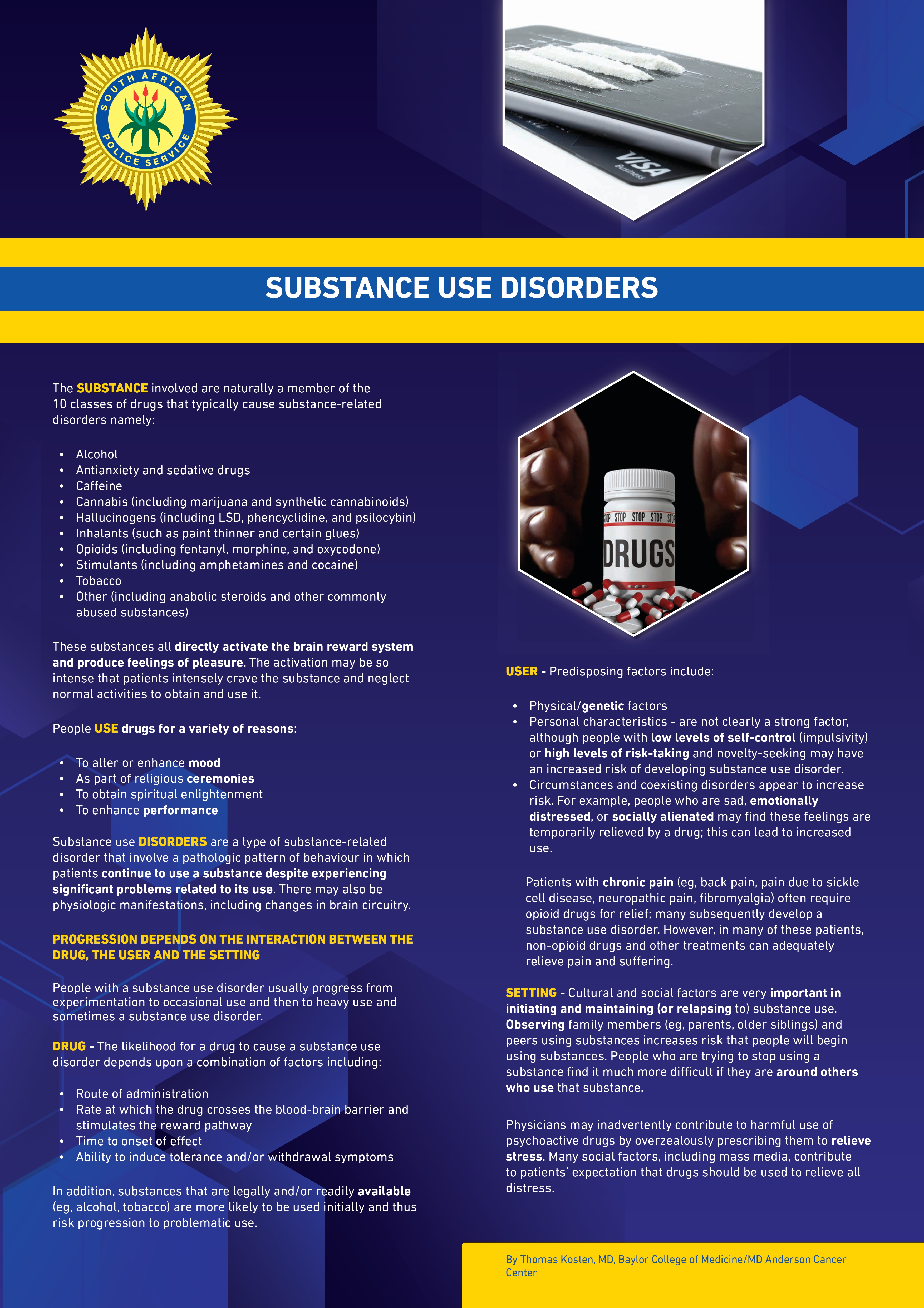The SUBSTANCE involved are naturally a member of the 10 classes of drugs that typically cause substance-related disorders namely: